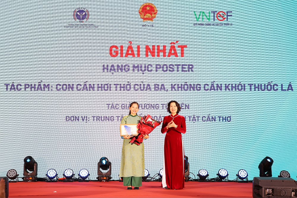 Thứ trưởng Bộ Y tế Nguyễn Thị Liên Hương trao giải nhất hạng mục Poster cho CDC Cần Thơ. Ảnh CDC cung cấp