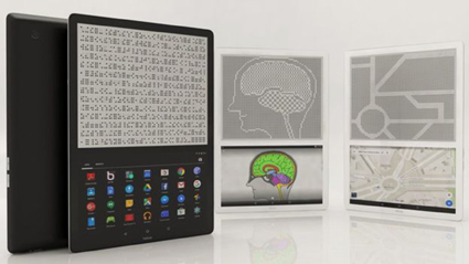 Nhưng đột phá nổi bật nhất có lẽ là Blitab, một máy tính bảng xúc giác được mô tả như iPad cho người khiếm thị. Sáng chế của các chuyên gia công nghệ người Áo tạo ra những chấm nhỏ sờ thấy được, giống như chữ Braille, tại khu vực phía trên màn hình cảm ứng, cho phép người dùng đọc toàn bộ trang sách bằng chữ nổi. Ngoài tính năng chuyển đổi văn bản thành chữ nổi hoặc giọng nói, Blitab còn có thể truyền dữ liệu thông qua công nghệ giao tiếp tầm ngắn (NFC)