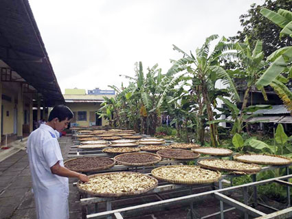 Bào chế dược liệu tại Bệnh viện Y học cổ truyền Cần Thơ. Ảnh: Bệnh viện cung cấp |
