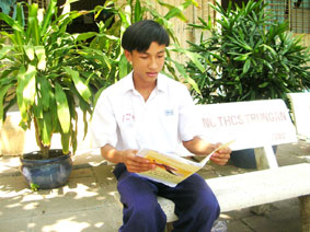 3. Mỹ Thanh (Mai Thị Mỹ Thanh, sinh viên lớp Cao đẳng Mầm non khóa 30) được hầu hết bạn bè, thầy cô đều quí mến bởi nghị lực vượt khó, học tốt.