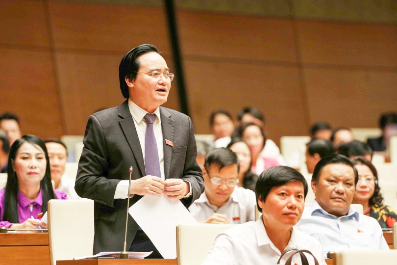 Bộ trưởng Bộ Giáo dục và Đào tạo Phùng Xuân Nhạ trả lời chất vấn của đại biểu Quốc hội. Ảnh: Dương Giang - TTXVN