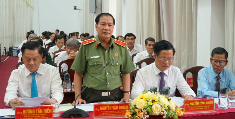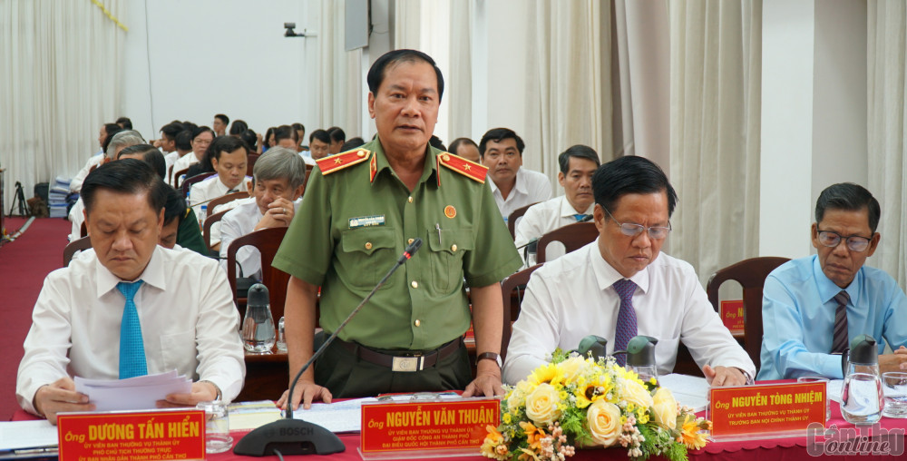 Thiếu tướng Nguyễn Văn Thuận, Giám đốc Công an thành phố, trả lời chất vấn.