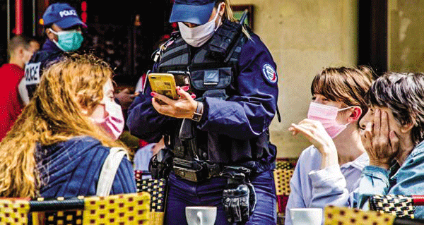 Cảnh sát Pháp kiểm tra thẻ sức khỏe của người dân tại một nhà hàng. Ảnh: Reuters