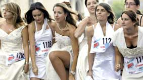 Khoảng 100 cô dâu mặc váy cưới và mang giày thể thao đã tham gia một cuộc chạy đua tại Thủ đô Belgrade (Serbia) với phần thưởng hấp dẫn là một đám cưới miễn phí.