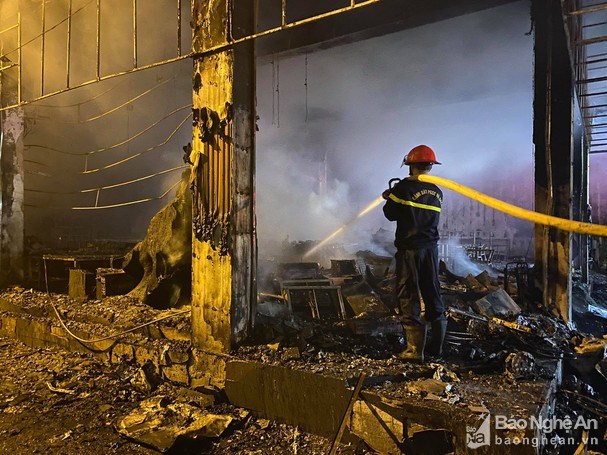 Cháy lớn thiêu rụi phòng trà tại thành phố Vinh, 6 người tử vong
