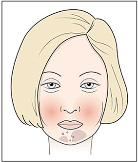Đôi gò má sưng đỏ, những mảng da tối màu hoặc mụn lấm tấm trên cằm là dấu hiệu điển hình của tình trạng dị ứng gluten một loại prôtêin có trong ngũ cốc, lúa mì, lúa mạch và lúa mạch đen.