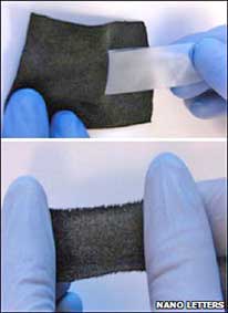 Vải sau khi được nhuộm bằng mực ống nano được ủi phẳng. Cũng giống như giấy nhuộm mực nano carbon, nó có tính dẫn điện cao và vẫn duy trì đặc tính liên kết điện trên khắp bề mặt vải ngay cả khi bị kéo giãn, gấp lại, thậm chí khi được giặt trong nước và vắt khô.