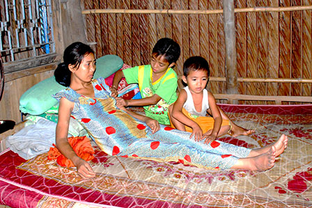 Hai đứa con của chị Đẹp luôn ở bên cạnh khi mẹ phát bệnh.
