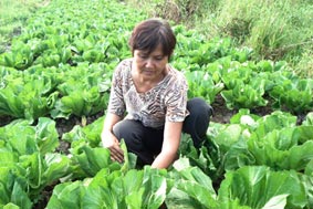 Chị Năm bên đám cải xanh mơn mởn đang chờ thu hoạch. Đợt này, chị Năm lại trúng mùa... |