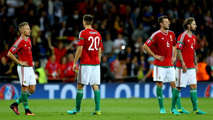 Các cầu thủ Hungary thất thần sau khi trận đấu kết thúc, họ phải rời cuộc chơi tại EURO lần này với một trận thua đậm. ảnh: Getty |