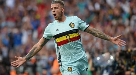 Alderweireld ăn mừng bàn thắng mở tỷ số 1-0 cho tuyển Bỉ trong hiệp 1. ảnh: AFP/Getty |