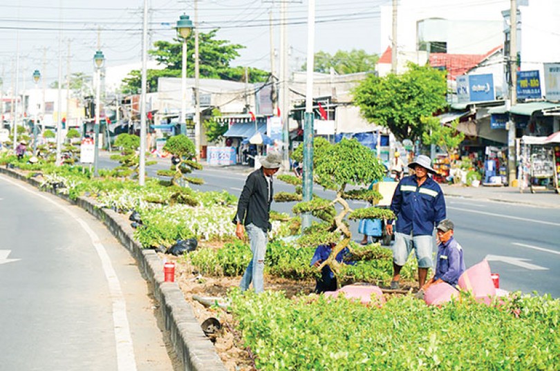 Tại đường Tôn Ðức Thắng, phường Phước Thới, cán bộ kỹ thuật, người lao động của Công ty Cổ phần cây xanh Tây Nguyên đang tiến hành cải tạo, làm mới dãy phân cách của tuyến đường. Anh Nguyễn Văn Năm, công nhân đang trồng cây xanh, cho hay: “Gần 1 tháng nay, chúng tôi xới đất, dọn cỏ để trồng các loại cây xanh, hoa, thảm cỏ mới. Chúng tôi phấn đấu thực hiện, sớm hoàn thành công trình để địa phương chào mừng Ngày Giải phóng miền Nam, thống nhất đất nước, Ngày sinh của Bác Hồ sắp tới”.