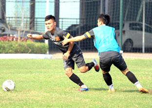 Các cầu thủ U-23 Việt Nam vẫn tập quyết liệt trước ngày lên đường sang Myanmar. Ảnh: S.H |