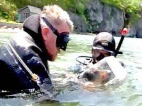 Chó học lặn bằng bình dưỡng khí