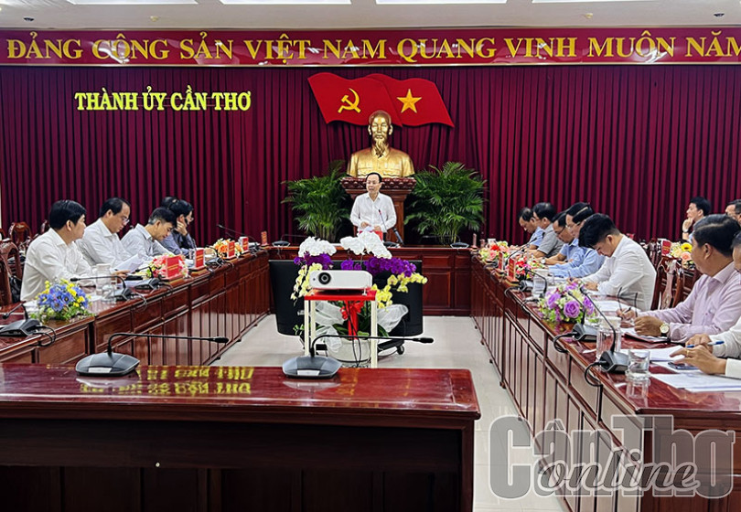 Đồng chí Nguyễn Văn Hiếu, Bí thư Thành ủy Cần Thơ, phát biểu chỉ đạo tại cuộc họp.