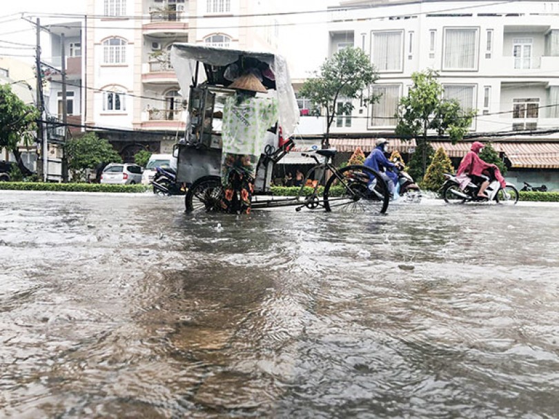 Mưa lớn gây ngập nghẹt đường phố tại quận Ninh Kiều.