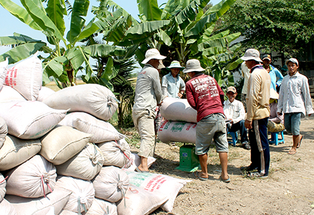 Thời gian qua, các cấp chính quyền tại TP Cần Thơ rất quan tâm đến việc khuyến khích liên kết giữa nông dân và doanh nghiệp trong sản xuất, tiêu thụ lúa gạo. Trong ảnh: Công ty TNHH Trung An thu mua của nông dân tại "Cánh đồng lớn" ở ấp Thới Phước, xã Thới Xuân, huyện Cờ Đỏ.