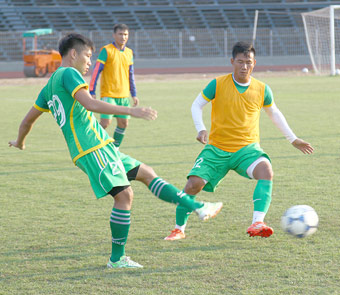 Các cầu thủ Cần Thơ đá tập vào chiều 16-2. Ảnh: Nguyễn Minh. |