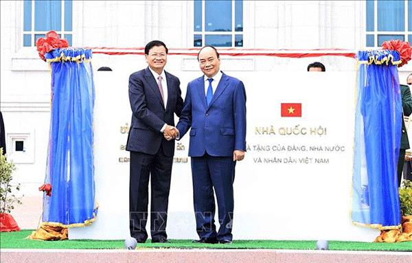 Chủ tịch nước Nguyễn Xuân Phúc và Tổng Bí thư, Chủ tịch nước Lào Hongloun Sisoulith dự lễ trao tặng công trình nhà quốc hội Lào