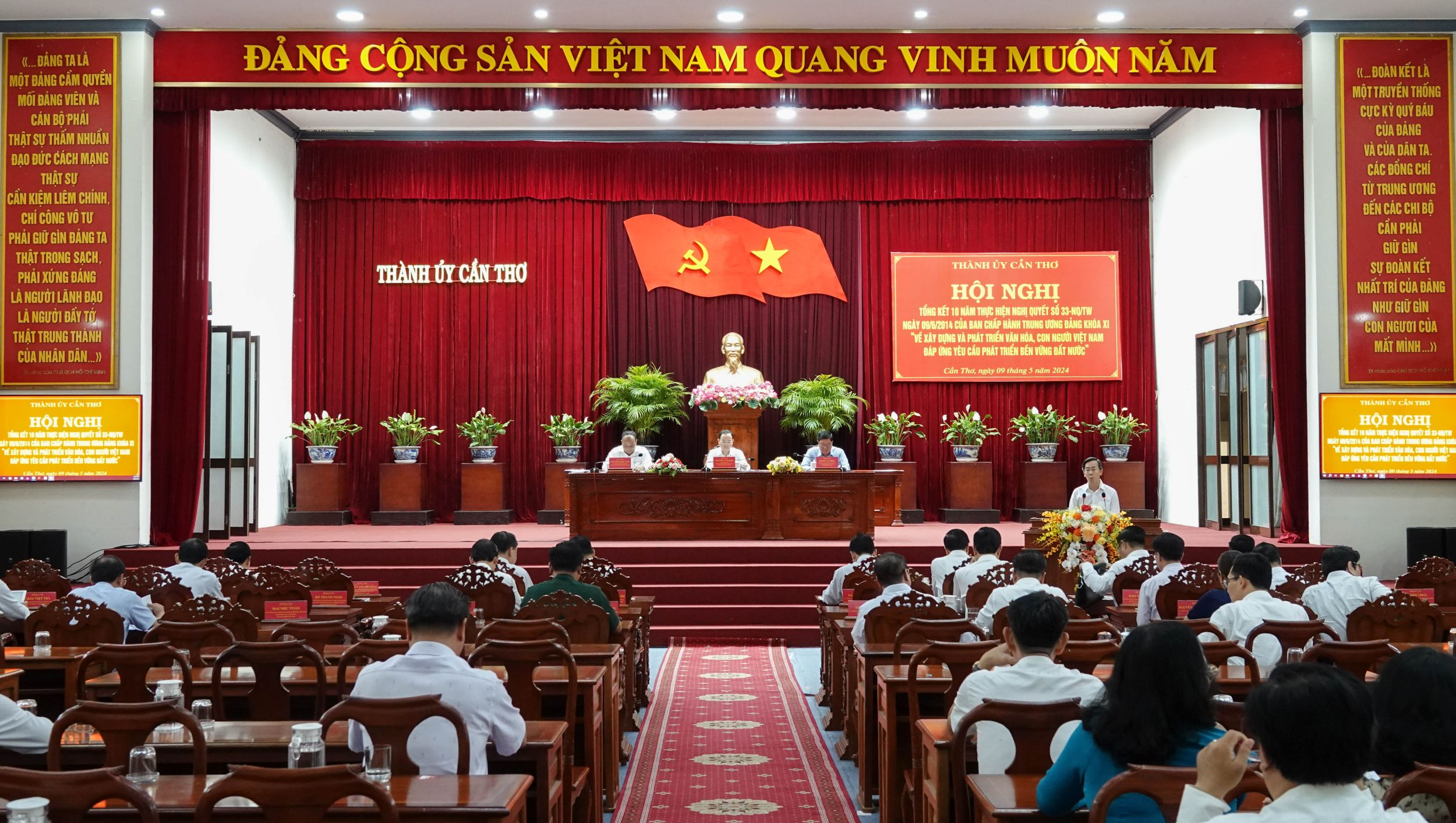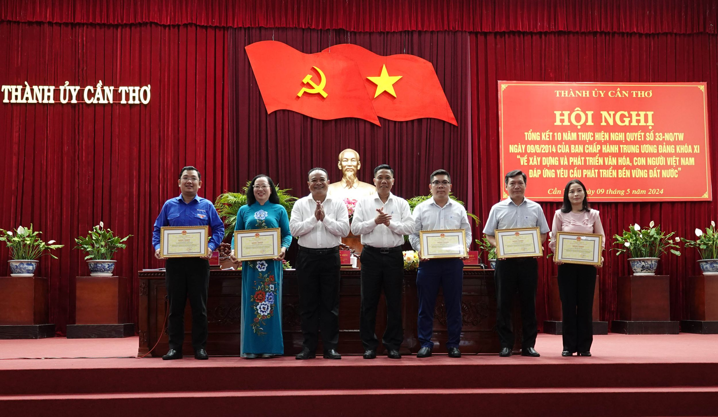 (CT) - Ngày 9-5-2024, Thành ủy Cần Thơ tổ chức Hội nghị Tổng kết 10 năm thực hiện Nghị quyết số 33-NQ/TW ngày 9-6-2014 của Ban Chấp hành Trung ương (khóa XI) “Về xây dựng và phát triển văn hóa, con người Việt Nam đáp ứng yêu cầu phát triển bền vững đất nước” (Nghị quyết 33).