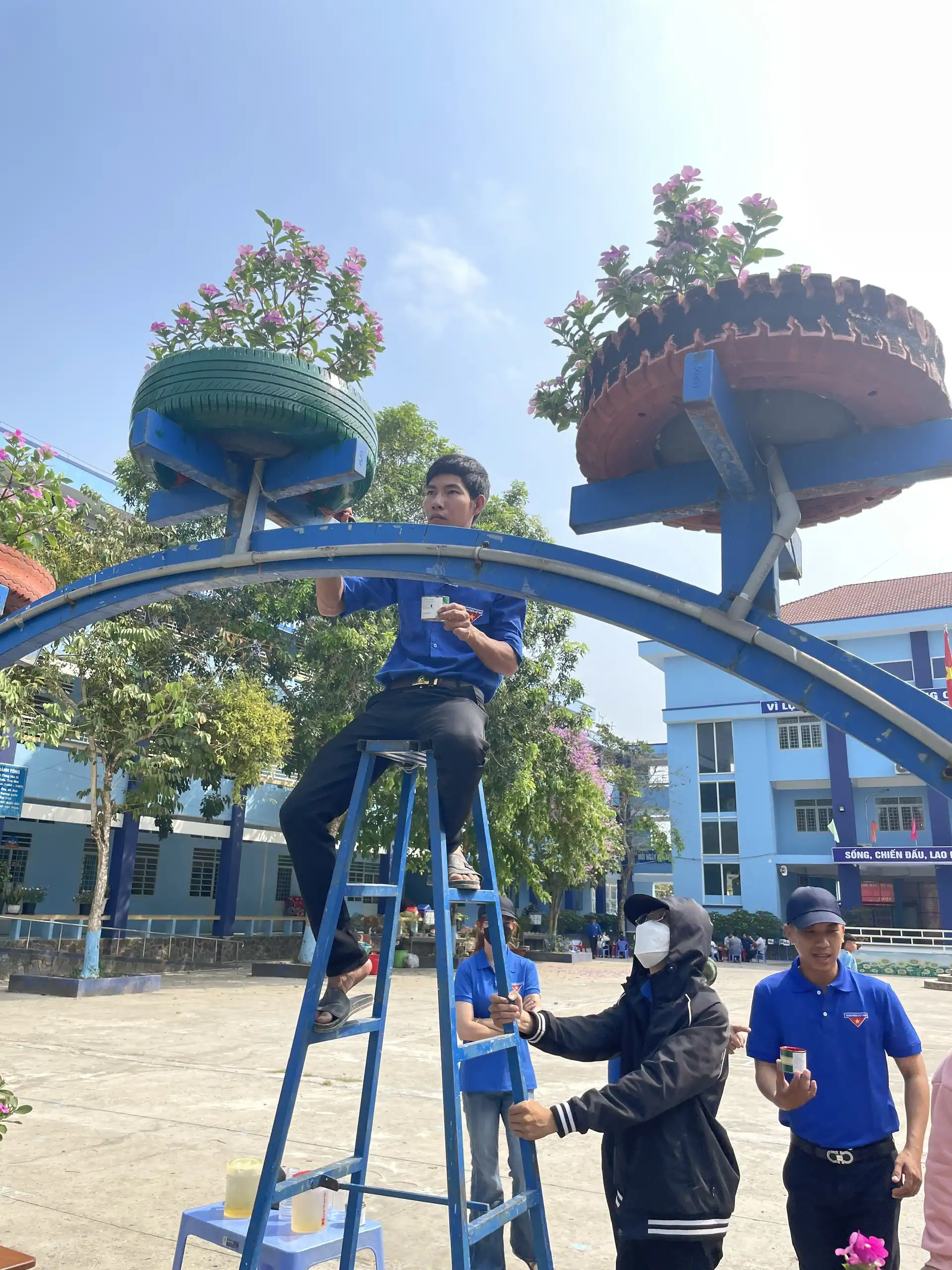ĐVTN xã Trung An thực hiện công trình thanh niên “Vì trường đẹp cho em” ở Trường Tiểu học Trung An 1.