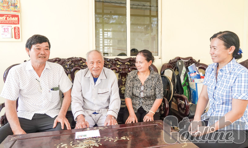 Ông Tám Nhi (bìa trái), bà Thắng (thứ 3, từ trái qua) cùng Bí thư Đảng ủy phường An Thới Phan Ngọc Kiều, thăm Anh hùng Lực lượng vũ trang nhân dân Nguyễn Đắc Thắng nhân dịp kỷ niệm Ngày Thương binh - Liệt sĩ 27-7.