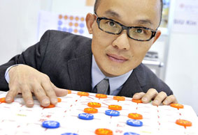 Michael Siu (Hồng Công) với bàn cờ dành cho người khiếm thị. Ảnh: Hartford Courant |