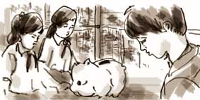 - Hôm qua mình đến nhà trò Hạnh, mình thấy nhà Hạnh nghèo lắm, buổi chiều Hạnh phải lang thang đi bán vé số giúp ông bà nội. Mình đề nghị quý này đập con heo đất tặng trò Hạnh các bạn nhé.