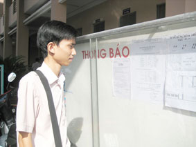 Một SVSP đang chăm chú theo dõi thông báo tuyển dụng của ngành giáo dục TP Cần Thơ. Nhu cầu việc làm luôn là mối quan tâm của những sinh viên sắp tốt nghiệp. Ảnh: M.N |