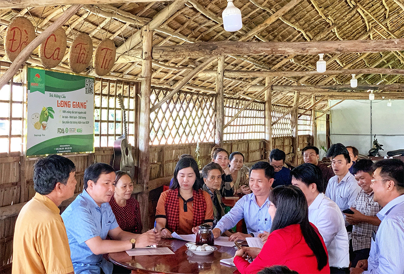 Đoàn đã đến nhà từng hộ dân trong HTX như bè cá Bảy Bon, nhà vườn Công Minh, nhà vườn Bé Bảy, vườn bưởi Phương My, nhà vườn Xiếu Tiên... để thăm hỏi và tìm hiểu một số hoạt động kinh tế từ vườn kết hợp làm du lịch nông nghiệp. Qua đó, nắm bắt thực trạng, tìm định hướng, giải pháp hỗ trợ bà con phát triển mô hình du lịch nông nghiệp theo hướng bền vững.