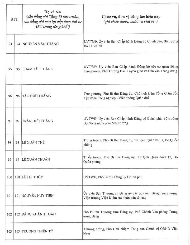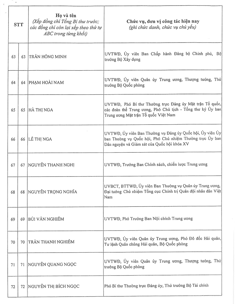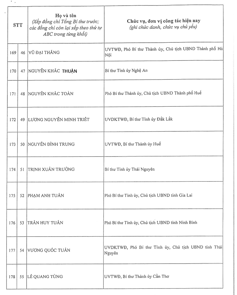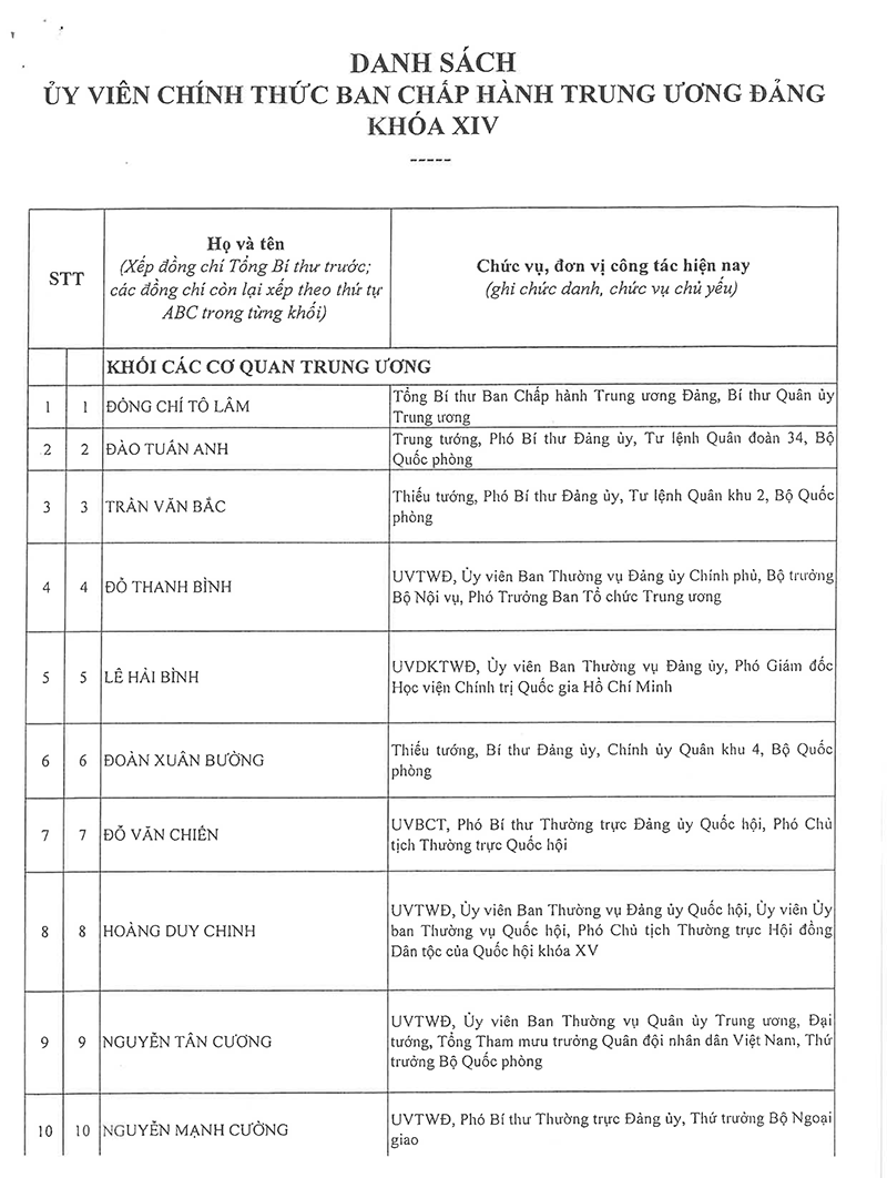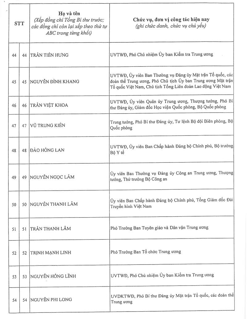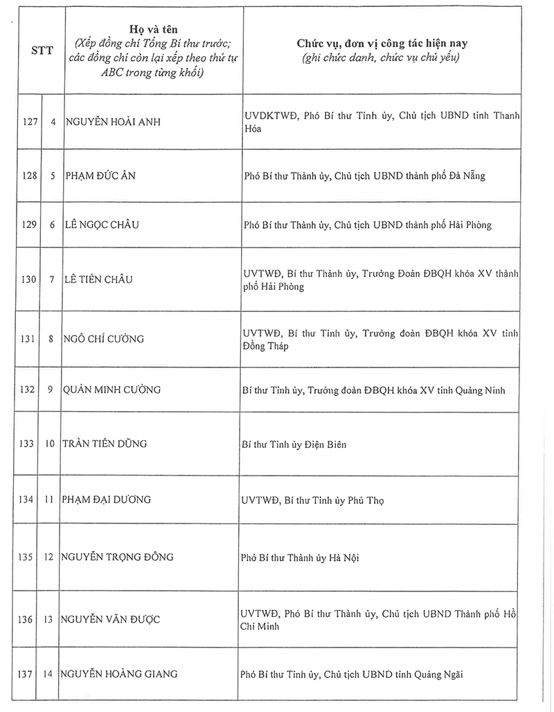 Công bố danh sách Ban Chấp hành Trung ương Đảng khóa XIV