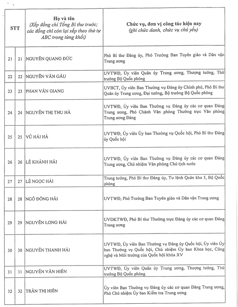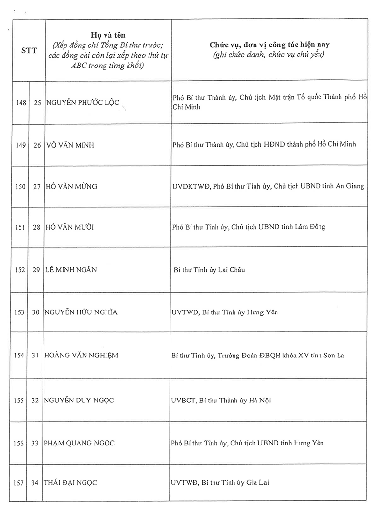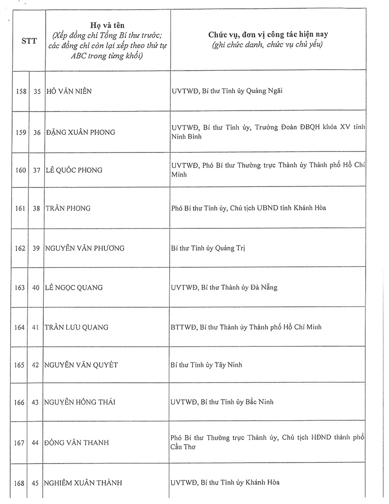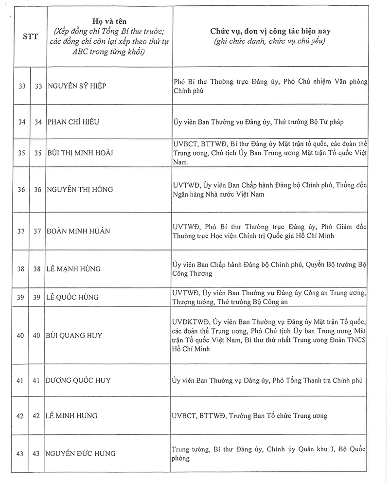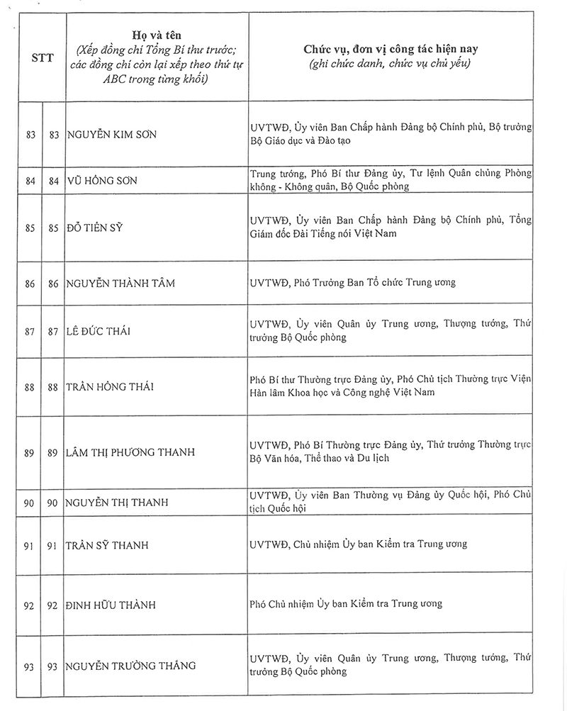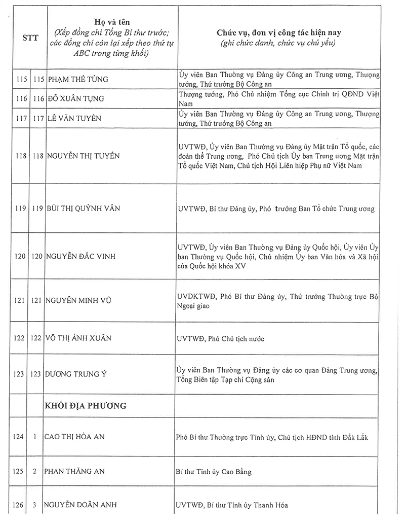 Công bố danh sách Ban Chấp hành Trung ương Đảng khóa XIV