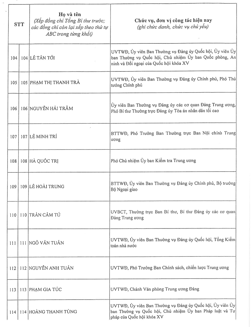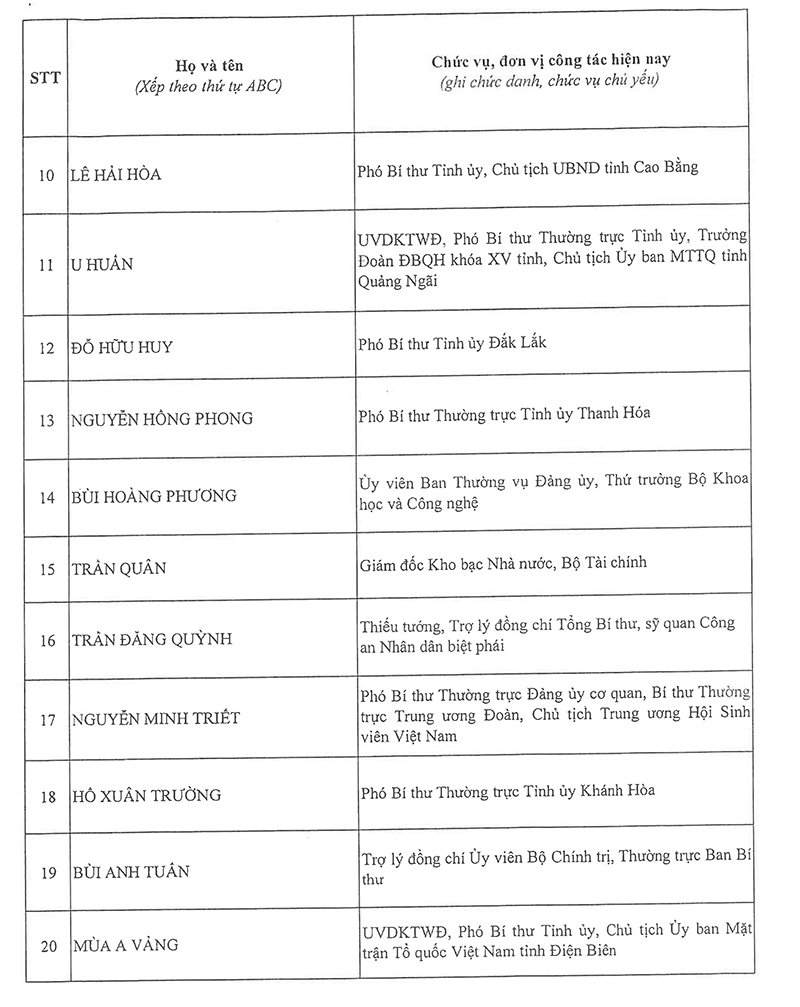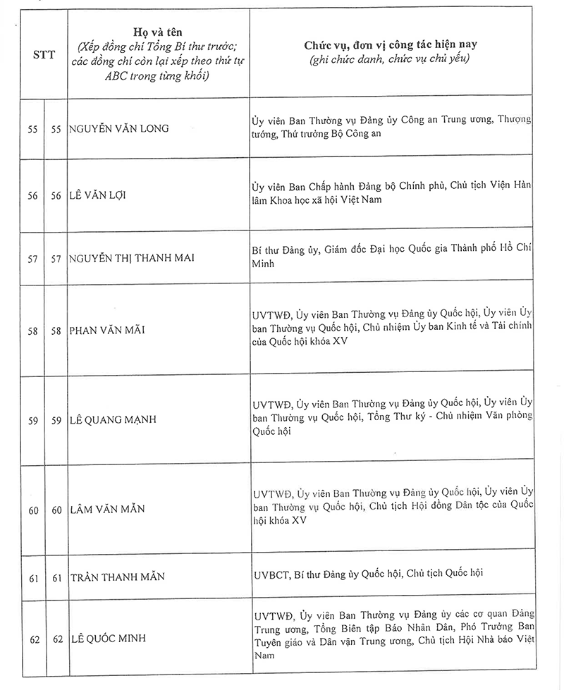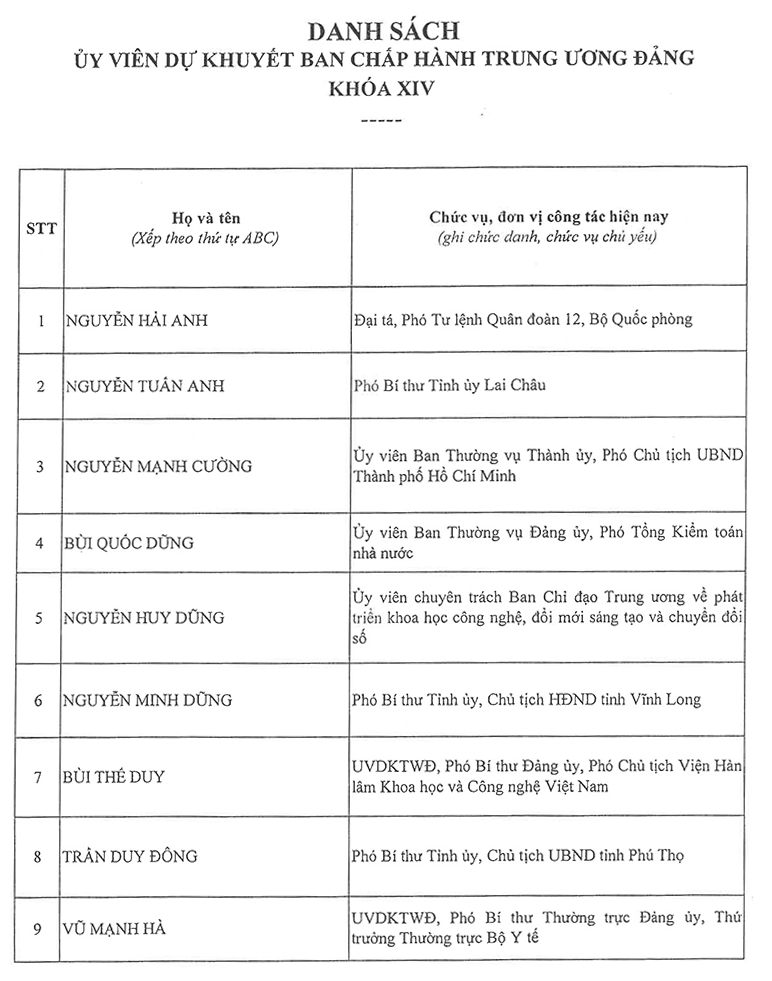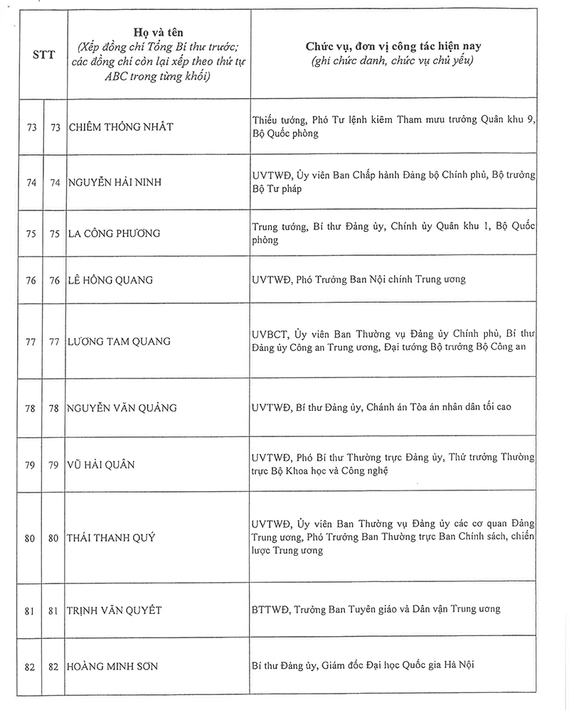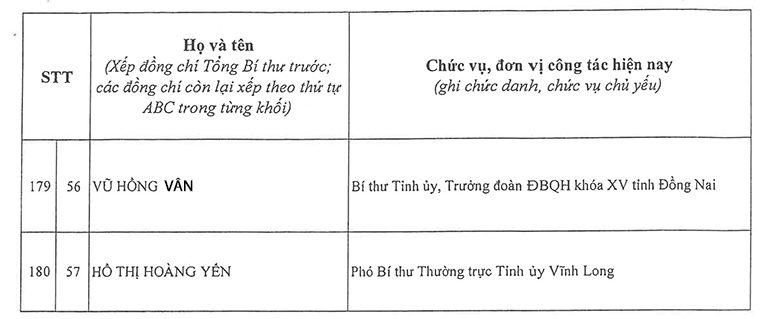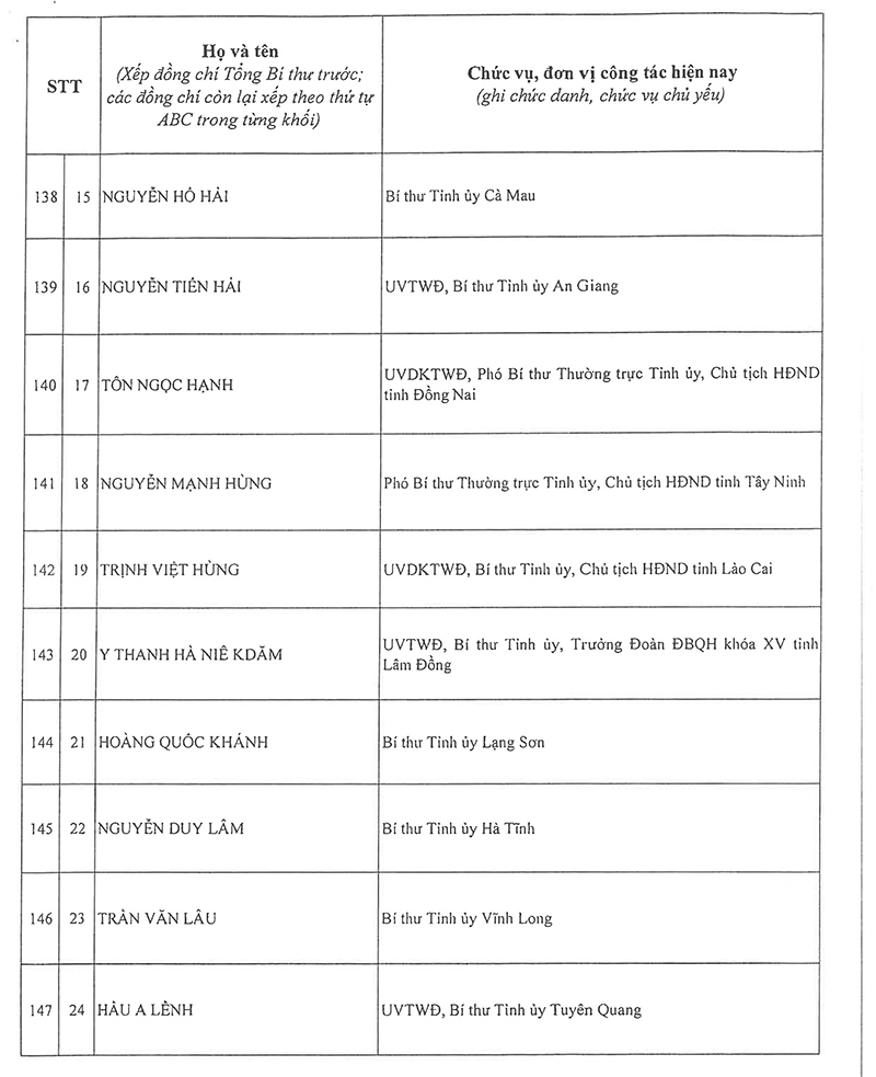 Công bố danh sách Ban Chấp hành Trung ương Đảng khóa XIV