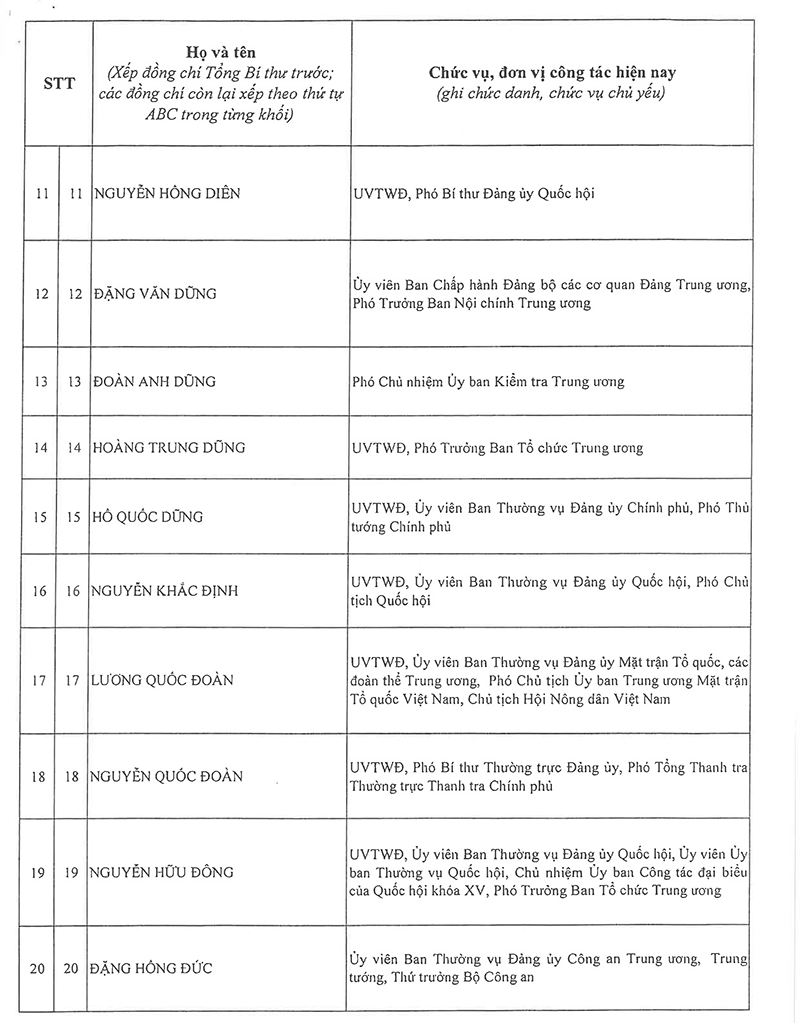 - Đoàn Chủ tịch Đại hội đại biểu toàn quốc lần thứ XIV của Đảng Cộng sản Việt Nam