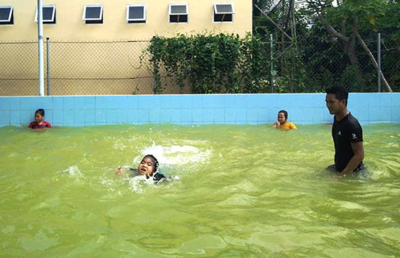 Một buổi học bơi của học sinh huyện Thới Lai. Ảnh: B.NG