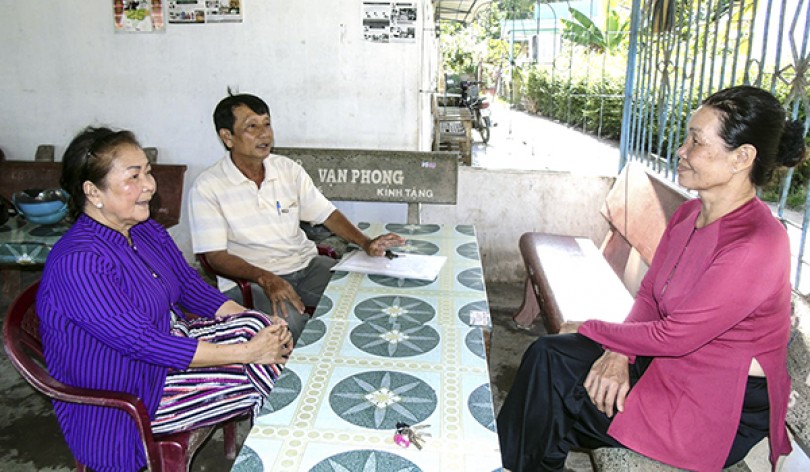 Cán bộ khu vực 5 (giữa) thăm hỏi đời sống nhân dân. Ảnh: NGUYỄN HUY