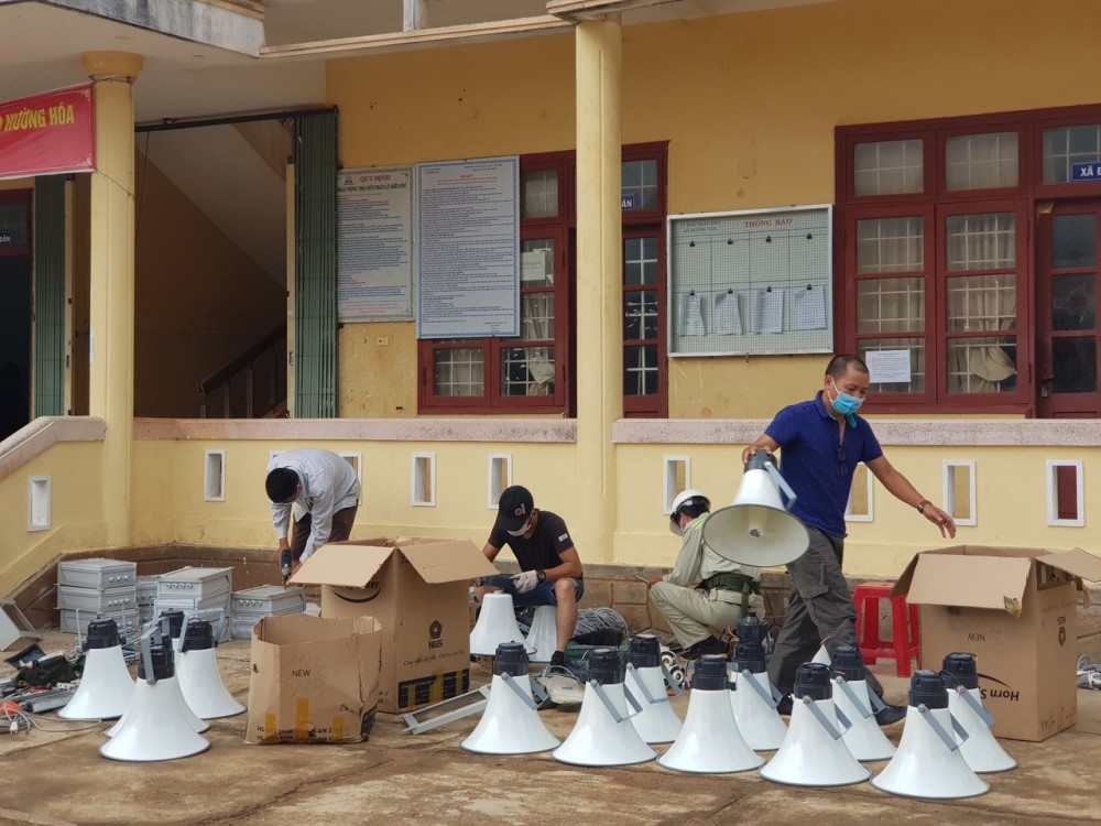 Chỉ trong một ngày, đội ngũ kỹ thuật đã nhanh chóng lắp đặt 10 cụm loa với 31 chiếc loa mới, kịp thời chuyển tải thông tin tuyên truyền phòng/chống dịch Covid – 19 tới người dân xã Hướng Tân (huyện Hướng Hóa, tỉnh Quảng Trị)
