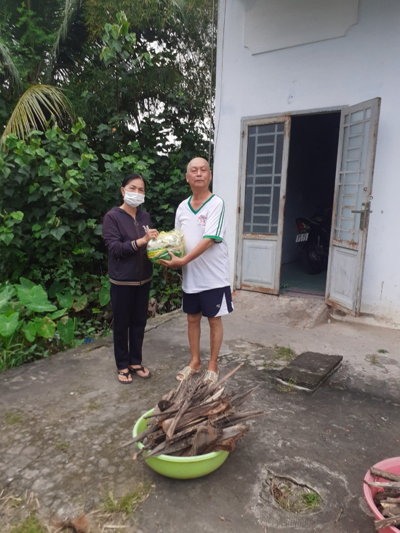 Chị Trang đến nhà hỗ trợ nhu yếu phẩm cho người cao tuổi trong đợt dịch. Ảnh do nhân vật cung cấp.