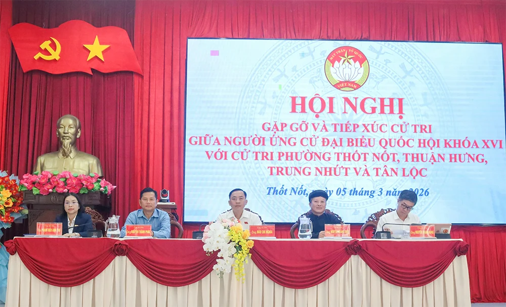 (CTO) - Ngày 5-3, tại phường Thốt Nốt, những người ứng cử đại biểu Quốc hội khóa XVI gặp gỡ, tiếp xúc cử tri Đơn vị bầu cử số 2, gồm các phường: Thốt Nốt, Thuận Hưng, Trung Nhứt và Tân Lộc.