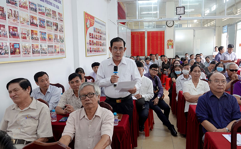 Cử tri phường An Hòa kiến nghị nhiều nội dung quan tâm đến Ðoàn ÐBQH thành phố. Ảnh: NGỌC QUYÊN