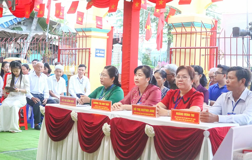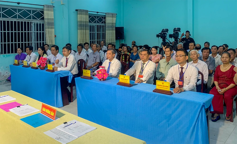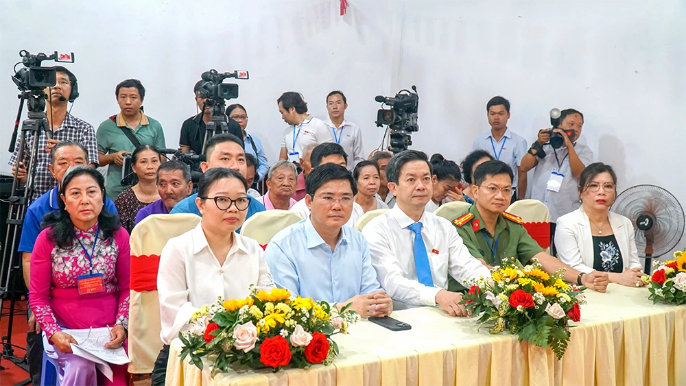 Các đại biểu dự khai mạc bầu cử tại Khu vực bỏ phiếu số 14, Đơn vị bầu cử số 2, phường Mỹ Xuyên. Ảnh: XUÂN NGUYÊN