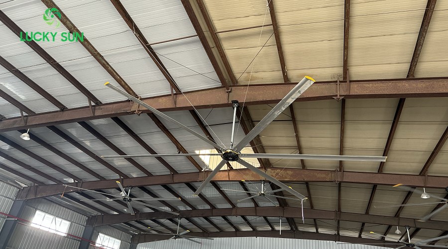Nhà xưởng là nơi thường khép kín, tập trung nhiều người và máy móc công nghiệp sinh nhiệt, đặc biệt vào mùa hè khiến không gian trở nên nóng bức, ngột ngạt. Vì vậy, lắp đặt quạt trần công nghiệp cánh dài HVLS là giải pháp hiệu quả giúp làm mát và tăng cường lưu thông không khí trong nhà xưởng. Hiện nay, cửa hàng quạt công nghiệp Lucky cung cấp đa dạng mẫu quạt HVLS với đường kính cánh từ 3.5m - 7.3m, công suất lên tới 1.5kW, phù hợp cho mọi quy mô nhà xưởng.