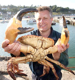 Paul Worsley đang khoe con cua biển khổng lồ mà anh vừa bắt được ở ngoài khơi bờ biển Dorset (Anh). Con vật cân nặng 7.7 kg với chiếc mai bề ngang 30,48 cm trong khi hai càng to như bàn tay của đàn ông. Theo tay thợ lặn 39 tuổi này, đây là con cua biển lớn nhất được bắt ở Anh và phần thịt của nó đủ cho ít nhất 10 người ăn. Paul kể anh bắt gặp con quái vật này trên xác của con tàu Empress of India nằm cách mặt biển gần 50 m và anh đã trần thân khi đưa nó lên khỏi mặt nước. “Tôi không thể tin khi nhìn thấy nó. Tôi từng bắt được rất nhiều cua nhưng chưa bao giờ có con nào to đến thế”, anh Worsley nói.
