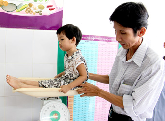 Trẻ được cân, kiểm tra sức khỏe tại Phòng Khám - Tư vấn dinh dưỡng Bệnh viện Nhi đồng TP Cần Thơ. |
