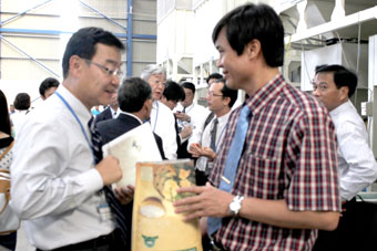 Đoàn DN Nhật Bản đến tham quan nhà máy sản xuất gạo của DNTN Cỏ May. Ảnh: T.H |