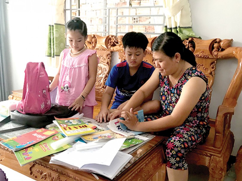 Chị Tuyết Mai chuẩn bị chu đáo để 2 con sẵn sàng vào năm học mới. Ảnh: KIỀU CHINH