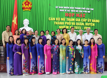 Cán bộ nữ tham gia cấp ủy đảng thành phố và quận, huyện nhiệm kỳ 2015-2020 tham dự họp mặt, chụp ảnh lưu niệm với lãnh đạo thành phố và cán bộ nữ qua các thời kỳ. |
