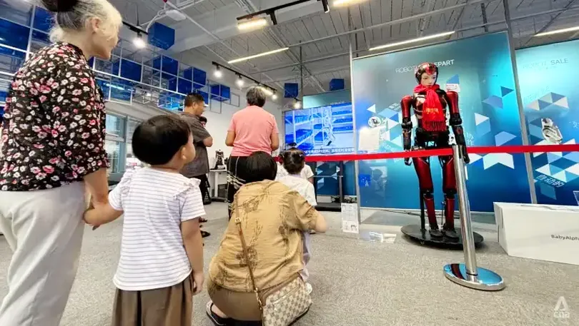 Robot hình người được trưng bày tại một cửa hàng ở quận Long Cương, thành phố Thâm Quyến. Ảnh: CNA