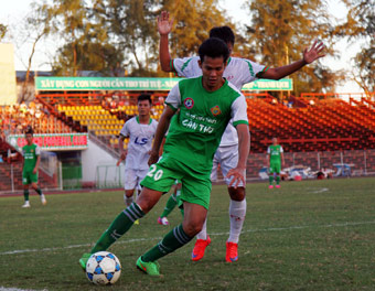 Các cầu thủ Cần Thơ giao hữu với Quảng Nam trước mùa giải, 2 đội bóng có thể an toàn ở nhóm giữa trong mùa giải 2016. |