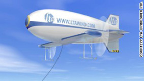 PowerShip của công ty LTA Windpower cơ bản là một khinh khí cầu với đôi cánh và hai cánh quạt quay, bay lơ lửng trên cao nhờ khí hyđrô. Nhà sáng lập kiêm Giám đốc điều hành Nykolai Bilaniuk thừa nhận sử dụng hyđrô nguy hiểm hơn heli vì dễ cháy nhưng ông cho biết các kỹ sư có đủ khả năng để giảm thiểu rủi ro này. Đó là lớp vỏ bọc khí được thiết kế đặc biệt để hyđrô không bắt cháy. Theo Bilaniuk, ưu điểm của khí hyđrô là rẻ tiền hơn so với heli.
